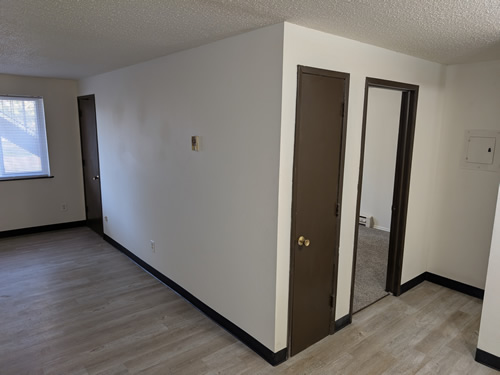 Interior apartment front. Beautiful, healthful vinyl flooring extravaganza. Great to look at, easy to clean and keep clean. No carpet bills.