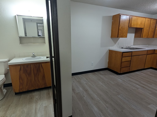 Wonderful living room to dining room vinyl area. Beautiful and sanitary.